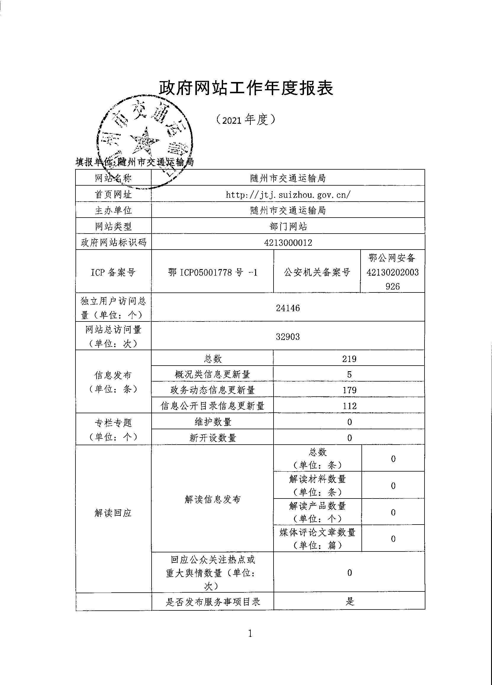隨州市交通運輸局2021年政府網(wǎng)站工作年度報表