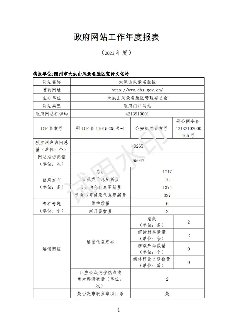 隨州市大洪山風景名勝區管理委員會2023年政府網站工作年度報表