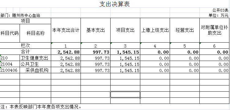 地方主管部門 | 隨州市衛生健康委員會 | 資金使用單位 | 隨州市中心血站 | ||||||