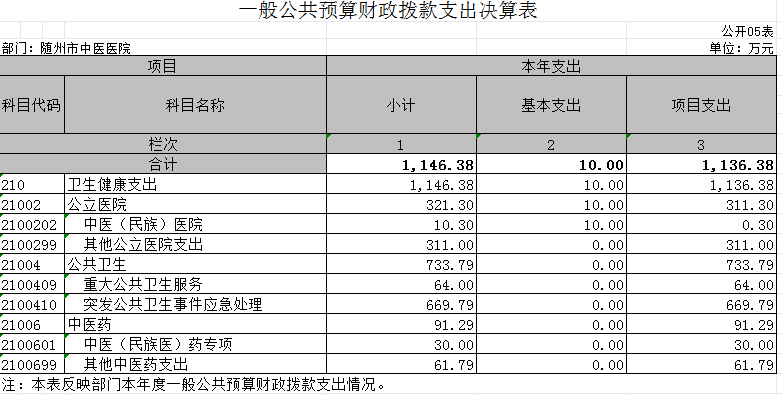 1.衛生健康支出(類)1146.38萬元,占100%,主要是用于突發公共衛生事件應急處理、中醫(民族)醫院、中醫(民族醫)藥專項、重大公共衛生服務、其他公立醫院支出等。