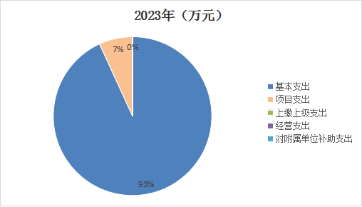 2023年度支出合計17858.07萬元,與2022年度相比,支出合計減少17696.94萬元,下降49.77%。其中:基本支出16636.4萬元,占本年支出93.16%;項目支出1221.67萬元,占本年支出6.84%;上繳上級支出0萬元,占本年支出0%;經營支出0萬元,占本年支出0%;對附屬單位補助支出0萬元,占本年支出0%。