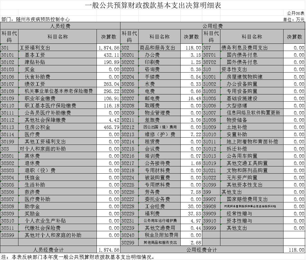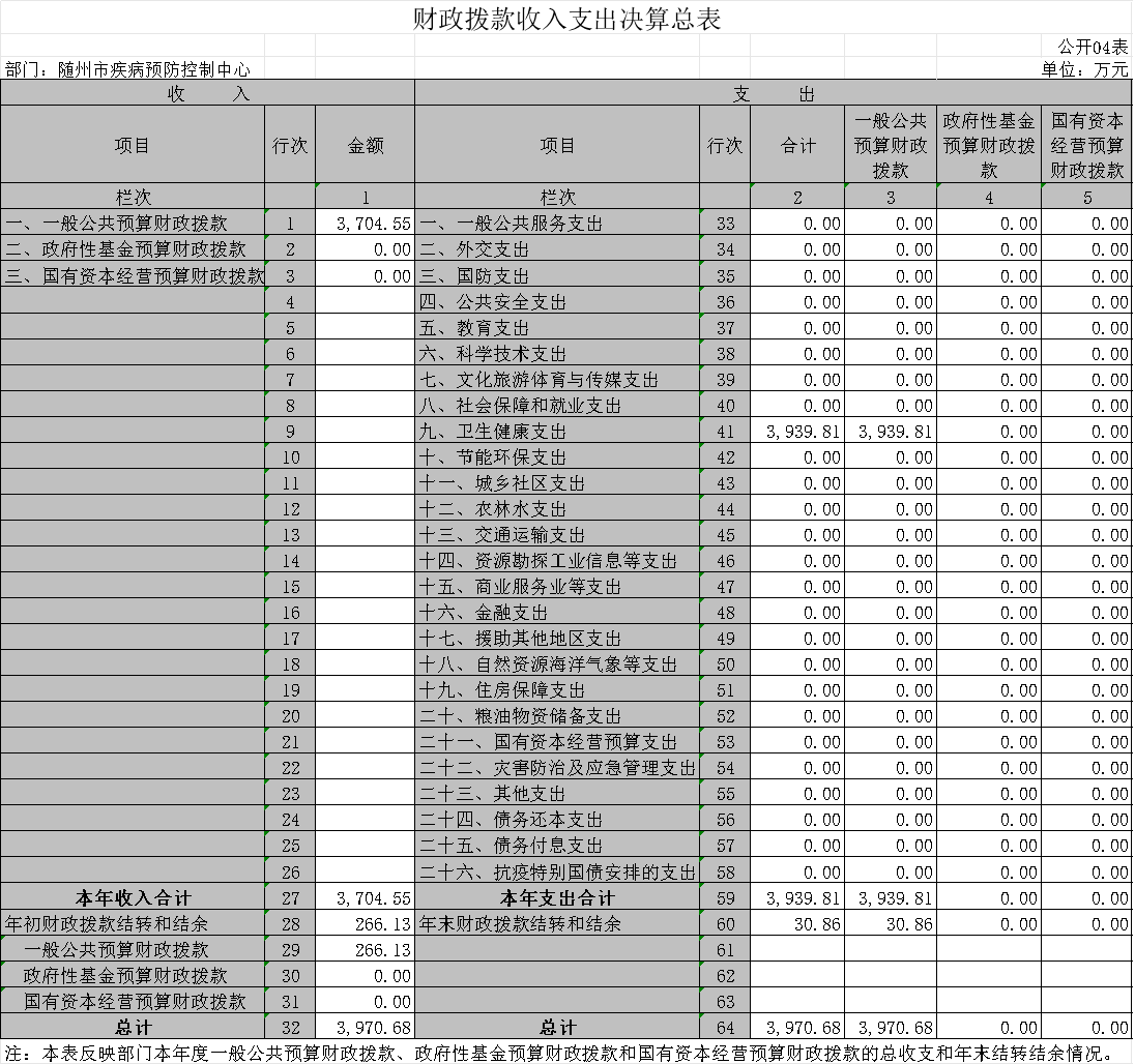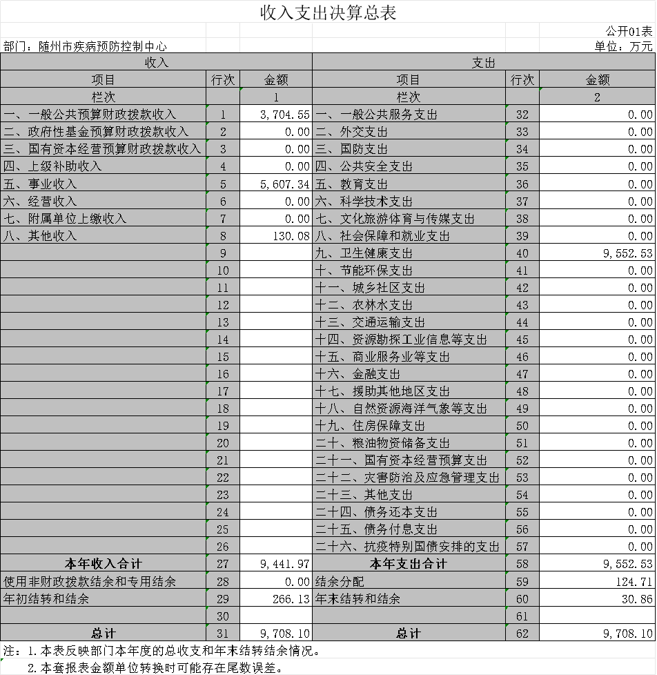 第二部分?隨州市疾病預防控制中心2023年度部門決算表