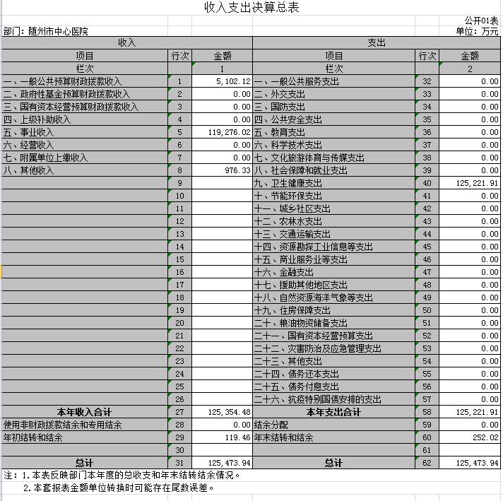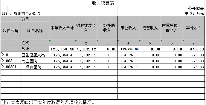 第二部分? 隨州市中心醫院2023年度部門決算表
