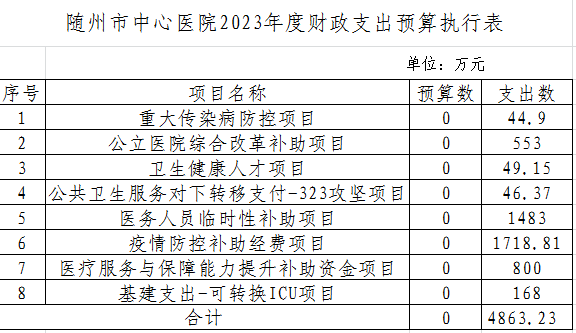 隨州市中心醫院2023年度專項支出共8個項目4863.23萬元,具體安排情況如下: