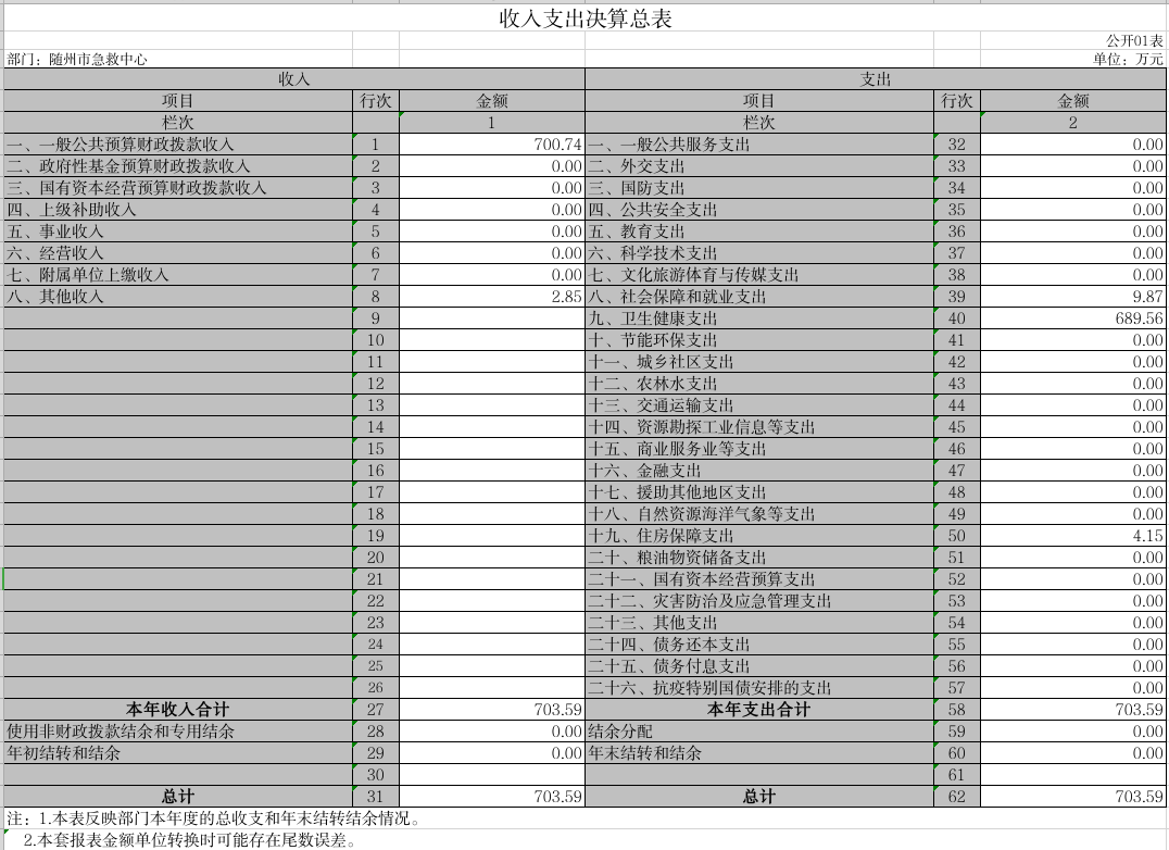 從單位構(gòu)成看,隨州市急救中心部門決算由實(shí)行獨(dú)立核算的隨州市急救中心本級(jí)決算和0個(gè)下屬單位決算組成。