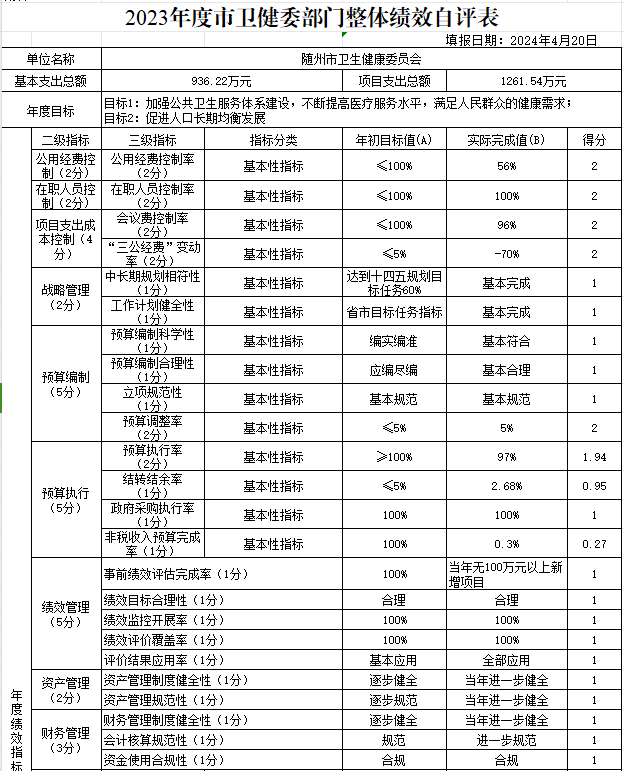 一、2023年度隨州市衛生健康委整體績效評價自評表