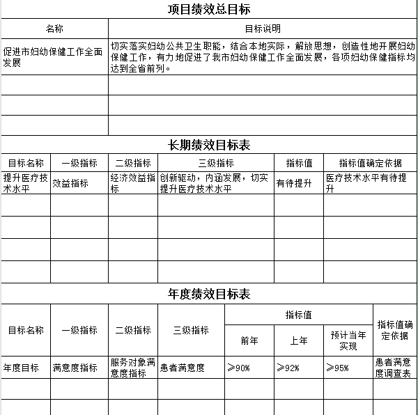 3.長期績效目標是提升醫療技術水平,促進婦幼事業健康發展。