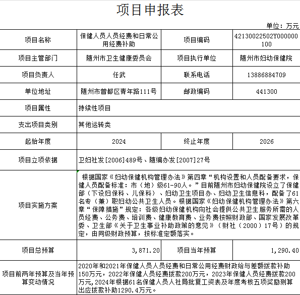 2.項目總績效是增加隨州市婦幼公共衛生服務設施資源,完善婦幼保健院業務功能,滿足人民群眾日益增長的婦幼保健需求。同時,緩解現有醫療資源不足,也為患者提供更好的專項醫療就診條件。