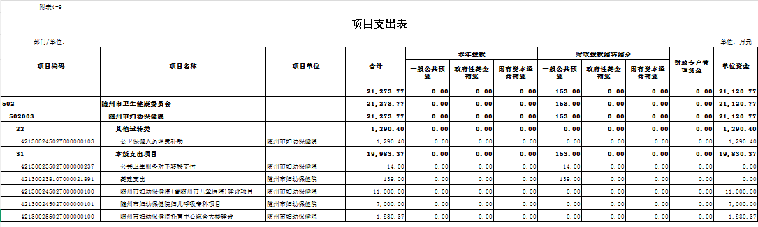 2025年隨州市婦幼保健院沒有國有資本經營支出。