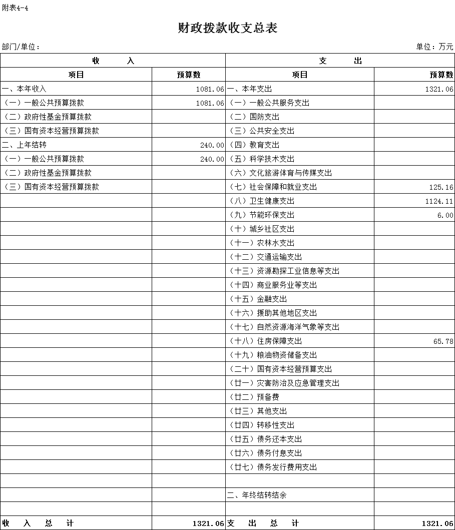 四、財政撥款收支總表