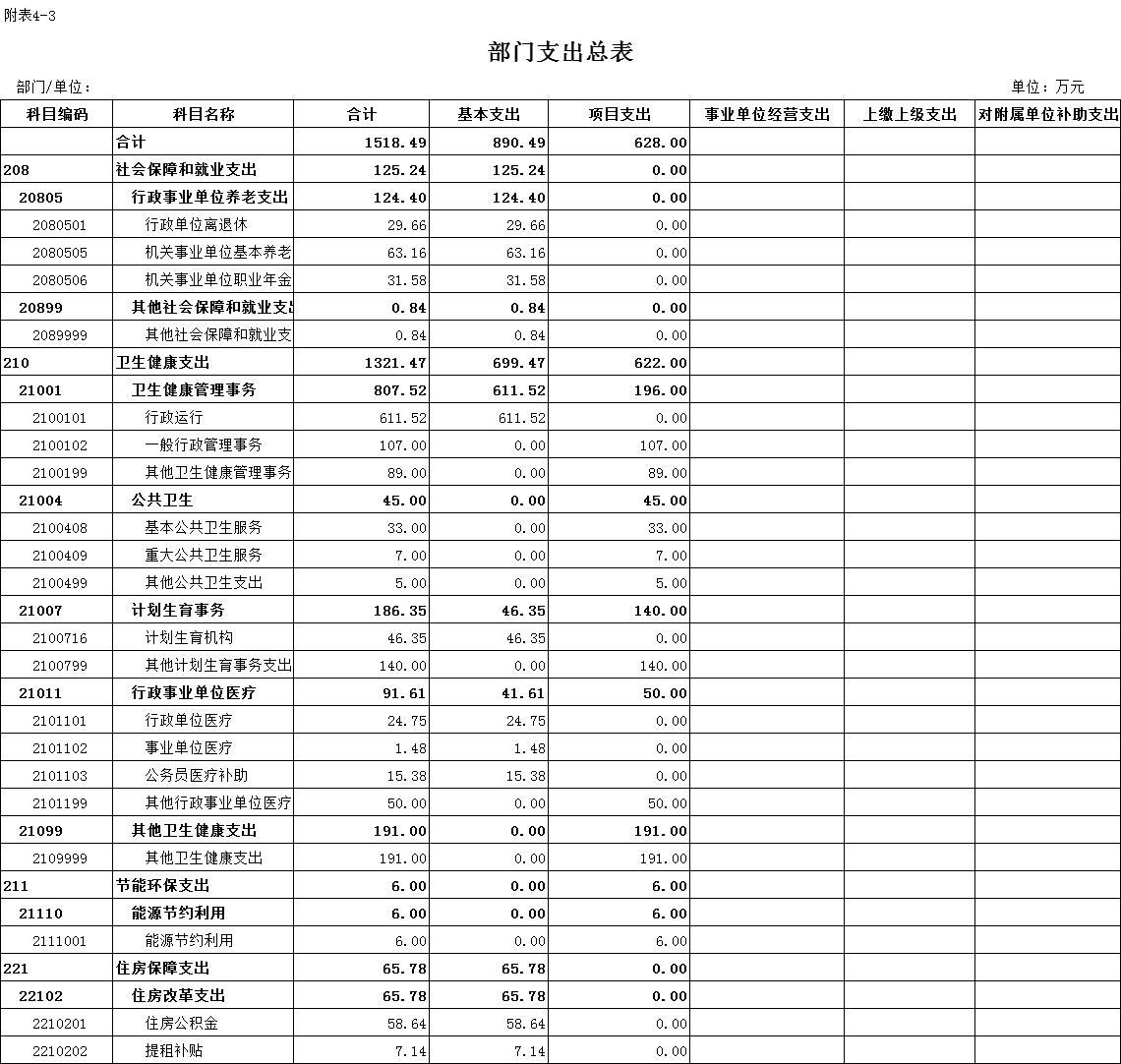 市衛健委本級當年支出預算總額1518.49萬元,較上年的預算資金總額減少2013.01萬元,降幅為57%。其中: