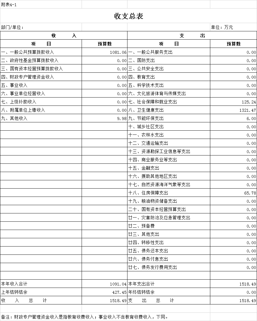 一、部門收支預算總表