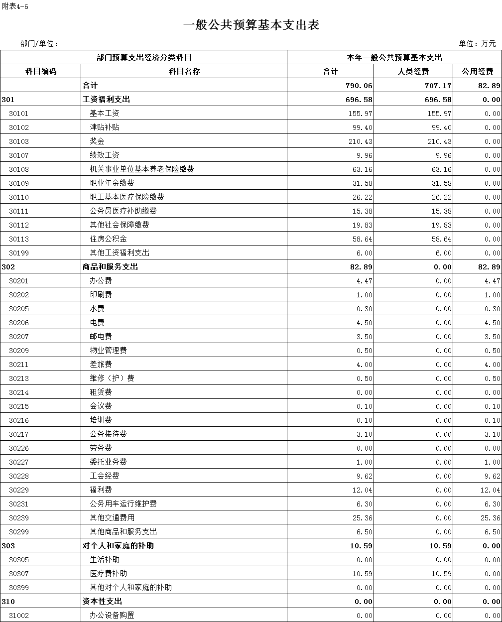 六、一般公共預算基本支出表