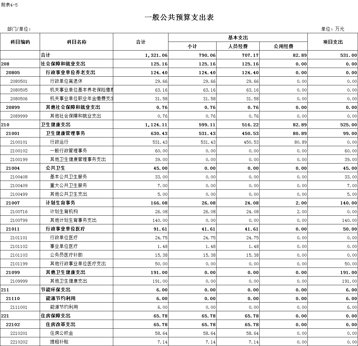五、一般公共預算支出表