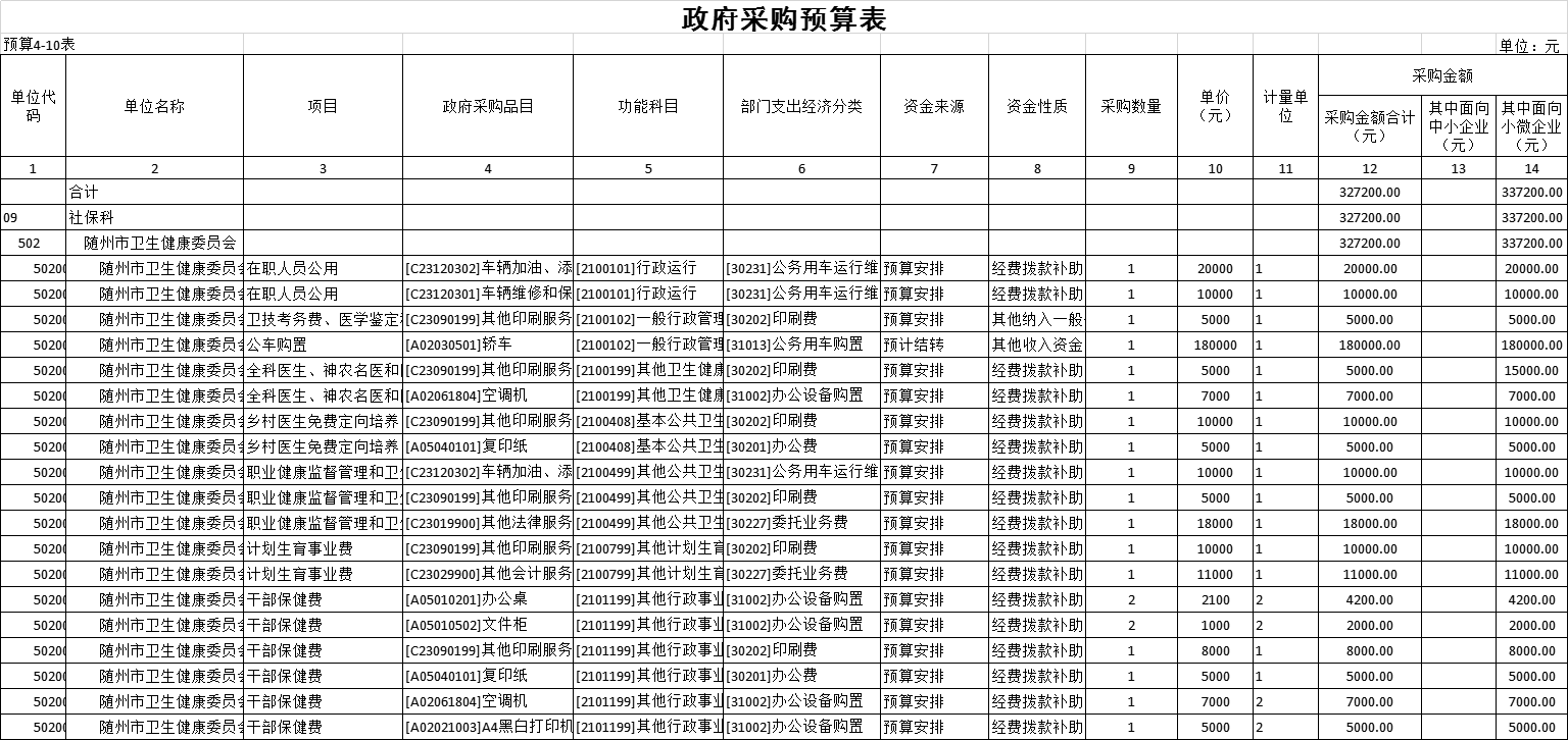 市衛健委本級政府采購預算33.72萬元,面向小微企業采購金額33.72萬元,份額比例為100%。其中政府采購貨物預算21.52萬元,同比減少38.81萬元,降幅64.33%,原因是壓縮開支,堅持“過緊日子”。政府采購服務12.2萬元,同比減少7.11萬元,降幅36.82%,原因是壓縮開支,堅持“過緊日子”。