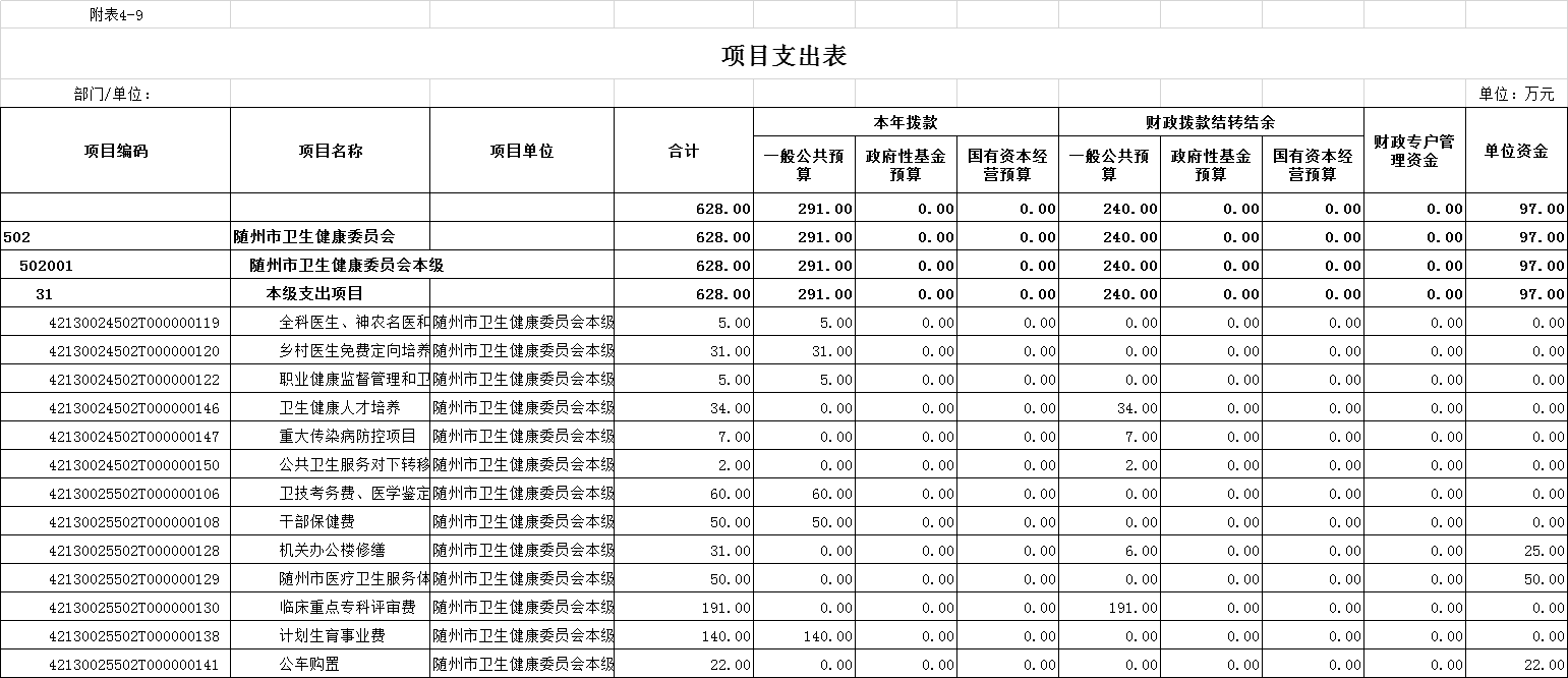 第二部分 隨州市衛生健康委員會2025年部門預算公開表