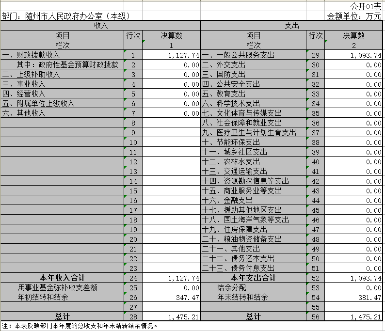 2015年決算收入總計1475.21萬元,其中:財政撥款收入1127.74萬元,上年結轉和結余347.47萬元。決算支出合計1093.74萬元。其中人員經費支出661.52萬元,日常公用經費支出432.21萬元。