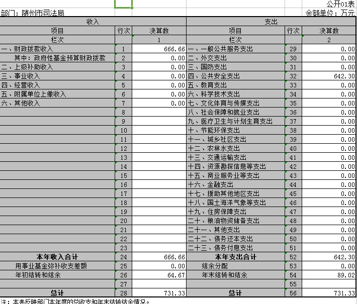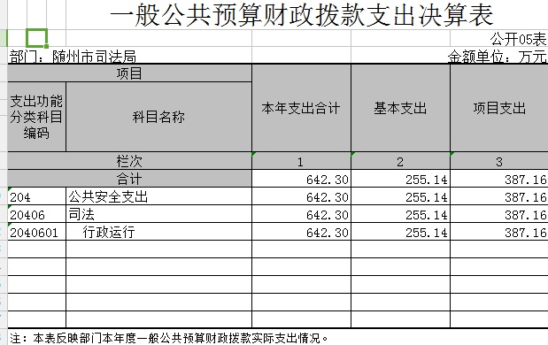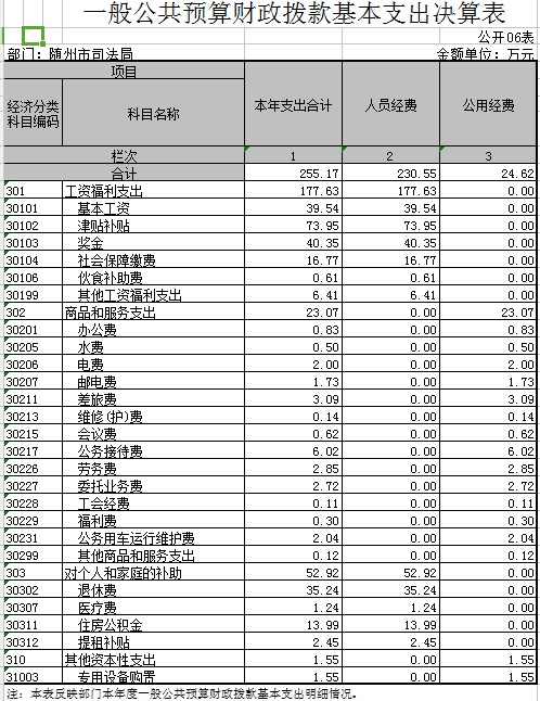 根據《市人民政府辦公室關于做好2015年政府信息公開工作的通知》(隨政辦函【2015】39號)要求,現將隨州市司法局2015年部門決算予以公開,有關情況說明如下: