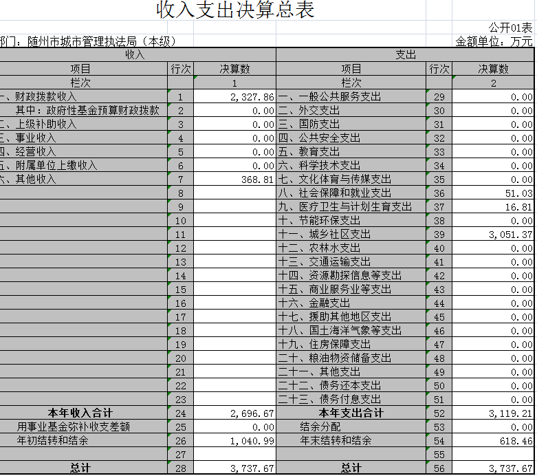 隨州市城市管理綜合執法局(以下簡稱市城管局),為政府直管正處級事業單位,局機關編制16名,實有人員12名。其中局長1名,副局長3名,工會主席1名,內設辦公室、督查考評科、執法監督科、業務管理科(行政審批科)、政工人事科等5個科室。