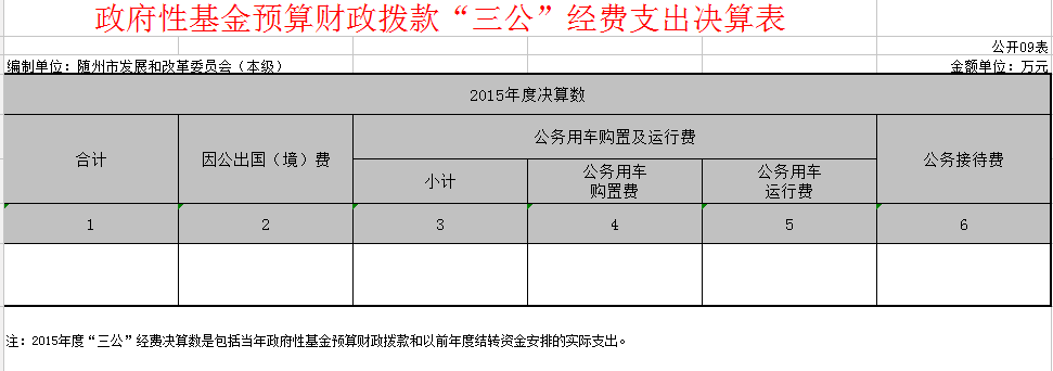 2015年,下屬的兩個二級單位農業資源區劃辦公室和節能監察中心“三公”經費支出納入市發改委機關統一核算,不單獨列支,因此不存在“三公”經費使用情況,特此說明。