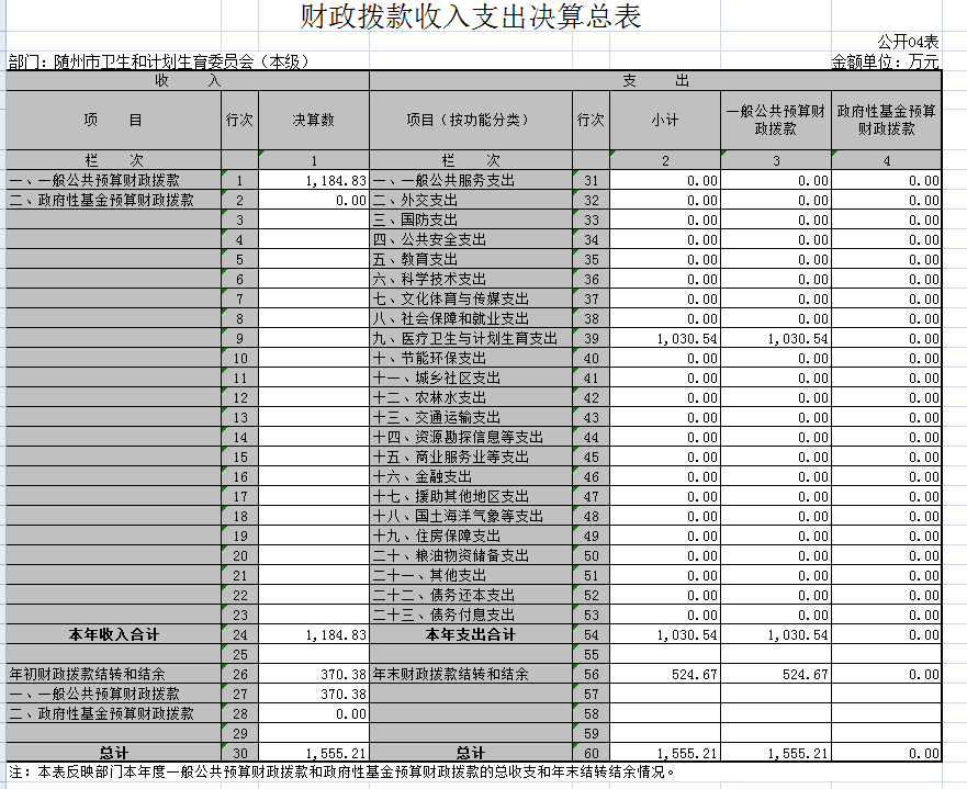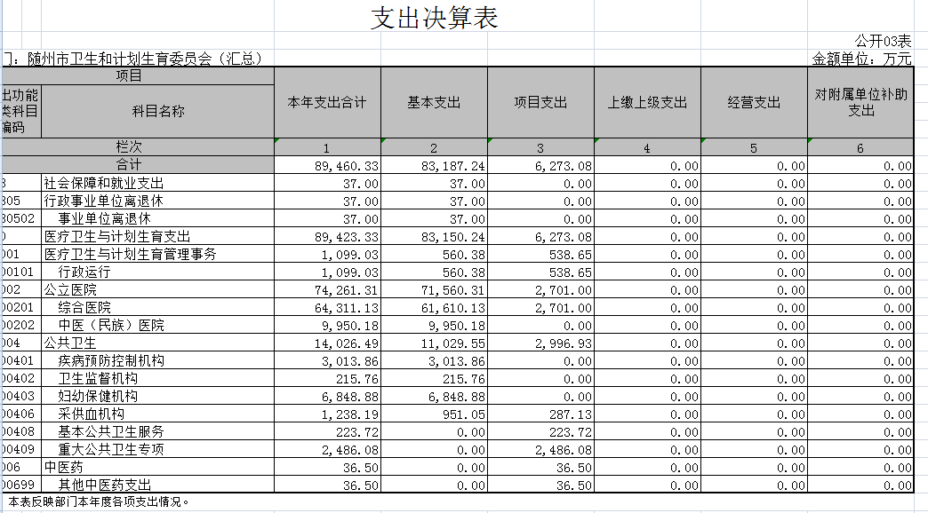 隨州市衛(wèi)生計(jì)生委2015年部門(mén)決算公開(kāi)