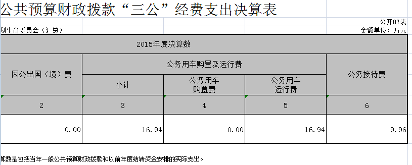 2015年“三公”經(jīng)費(fèi)財(cái)政撥款決算數(shù) 26.90萬(wàn)元。其中: 公務(wù)接待費(fèi)9.96萬(wàn)元,公務(wù)用車(chē)購(gòu)置及運(yùn)行維護(hù)費(fèi)16.94萬(wàn)元,無(wú)因公出國(guó)(境)費(fèi)。