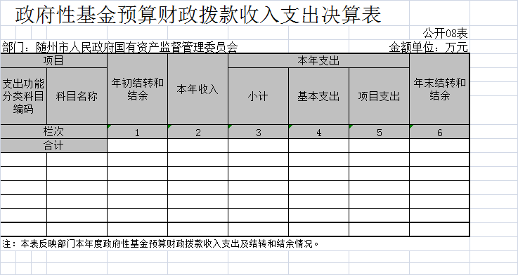 8.政府性基金預算財政撥款收入支出決算表(公開08表)