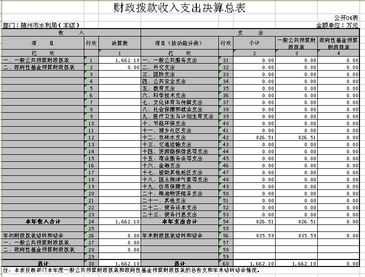 1、2016年度收支情況。隨州市水利局(本級)2016年部門收入1662.7萬元,其中財政撥款收入1662.1萬元,其他收入0.6萬元。部門全年支出826.51萬元,其中基本支出587.21萬元,項目支出239.3萬元;基本支出中工資福利支出386.52萬元,對個人和家庭補助支出116.69萬元,商品和服務支出74.88萬元,其他資本性支出9.13萬元。年末結轉結余836.19萬元。