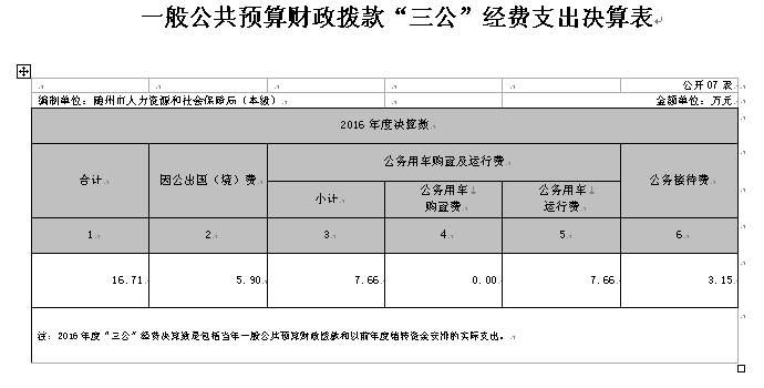 2016年“三公”經(jīng)費(fèi)支出16.71萬(wàn)元,其中:因公出國(guó)5.9萬(wàn)元,公務(wù)接待費(fèi)3.15萬(wàn)元,公車運(yùn)行費(fèi)7.66萬(wàn)元。比年初預(yù)算25.21萬(wàn)元減少8.5萬(wàn)元,比2015年25.67萬(wàn)元減少8.96萬(wàn)元,公車改革、接待費(fèi)用減少是主主要原因。