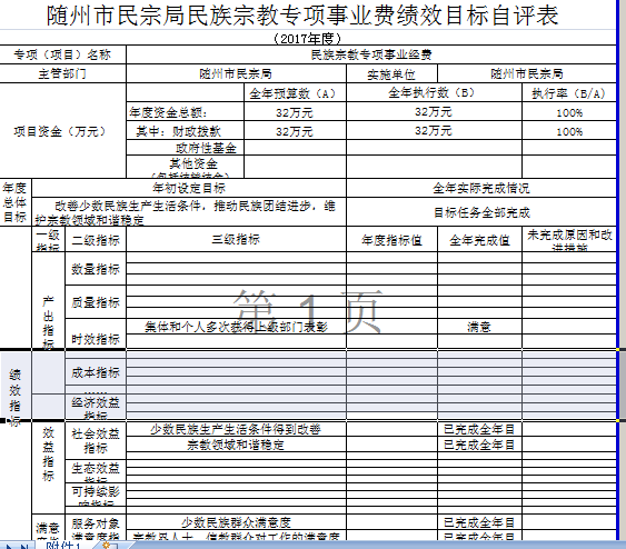 預算經費保障了民族宗教工作的順利開展,在推動民族團結、加強城市民族服務管理、宣傳民族政策法規、建立健全民族工作機制、加強宗教團體建設、團結信教群眾等方面產生了良好的社會效益。
