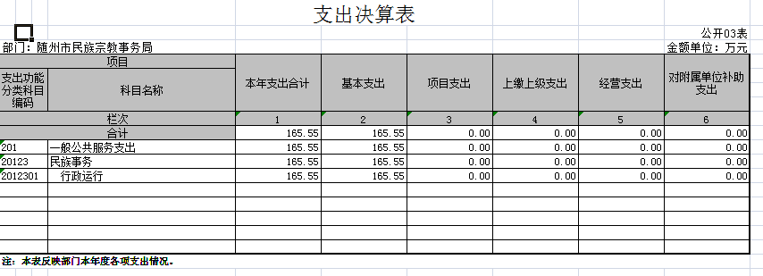 2017年度總支出165.55萬元,比2016年度增加45.18萬元,增長37%,增加原因:人員增加,工資支出增加,對民族宗教領域幫扶力度加大,支出增加。