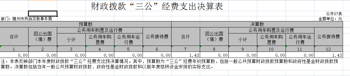 隨州市民宗局2017年度“三公”經費總支出14274元,比上年度減少 2533元,減少17%“三公”經費開支具體明細如下: