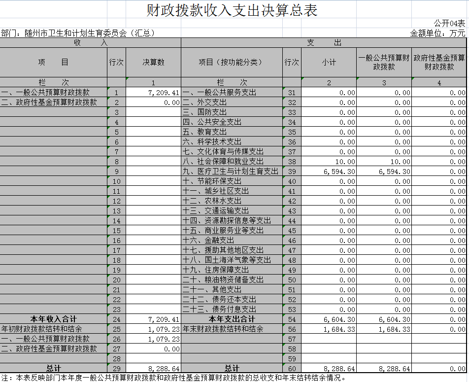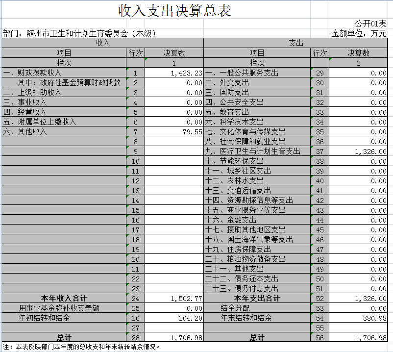 根據(jù)隨州市財政局《關(guān)于批復(fù)2017年度部門決算的通知》(隨財函〔2017〕151號)和《關(guān)于做好2017年度市級部門決算信息公開工作有關(guān)事項的通知》(隨財函〔2017〕152號)文件精神,現(xiàn)將隨州市衛(wèi)生計生委2017年部門決算情況說明如下: