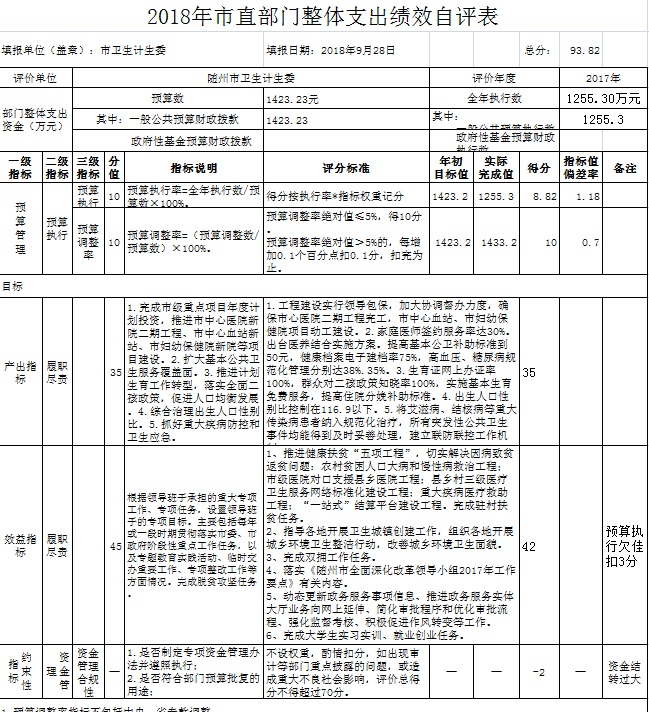 第四部分:2017年度部門決算表和部門整體支出、計生事業(yè)費項目經(jīng)費、創(chuàng)衛(wèi)項目經(jīng)費績效自評表