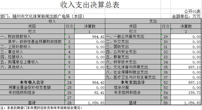 本年度財政撥款收入1056.83萬元,其中:財政撥款收入964.42萬元,較上年度上升46.51%,主要原因是2017年財政預算增加市笫二屆全運會經費150萬元、市笫二屆全運會經費150萬元、花鼓戲保護專項經費50萬元、市區共建前進村體育設施基本建設經費100萬元、養老保險人員工資等30萬元、省廣電監控平臺專項資金35萬元、省文物保護專項資金25萬元。上年度結轉和結余92.41萬元。