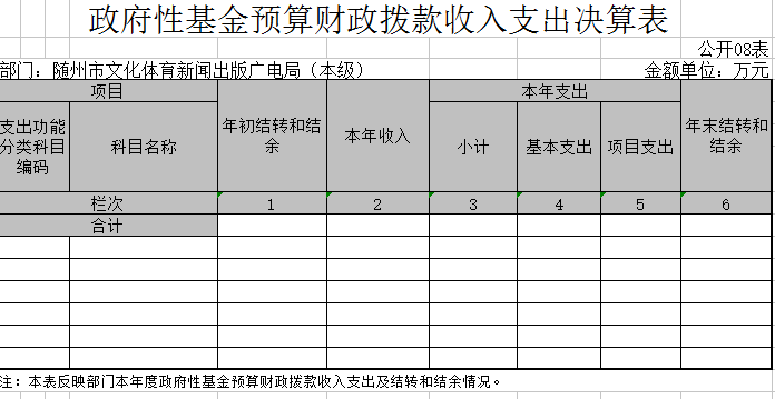 7、年末結轉和結余:指本年度或以前年度預算安排、因客觀條件發生變化無法按原計劃實施,需要延遲到以后年度按有關規定繼續使用的資金。