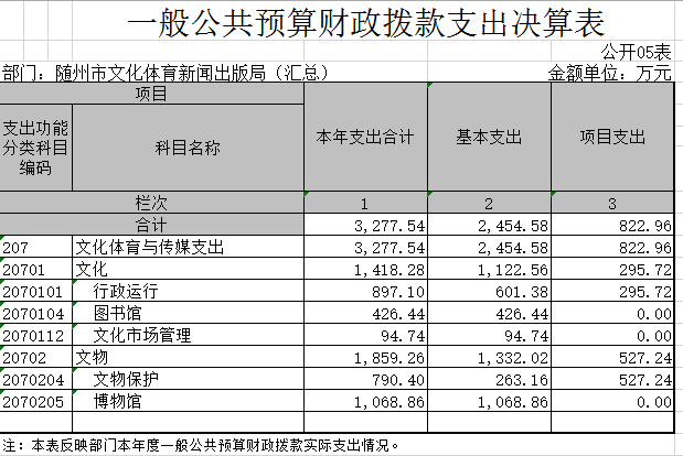 4、第二屆全運會經費150萬用來舉辦隨州市第二屆運動會開支。當年市委市政府下達的重點工作包括政府購買公共文化產品和隨州市第二屆運動會的舉辦。執行數為113.71萬元,完成預算率75.81%。主要原因是二運會舉辦成功,各項費用節支開流,節省財政資金36.29萬。