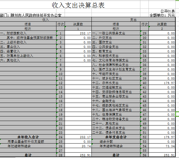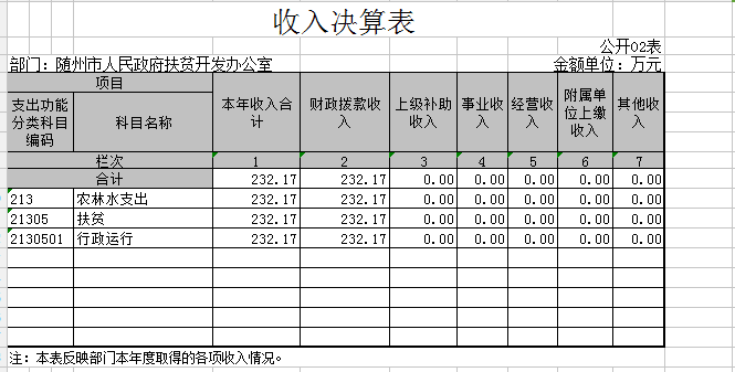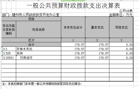 隨州市人民政府扶貧開發辦公室2017年部門決算公開信息