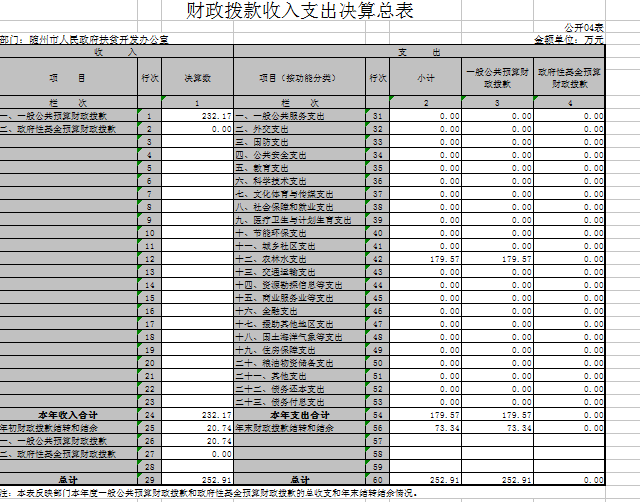 ?市扶貧辦只有一般公共預算財政撥款收入232.17萬元和基本支出179.57萬元,無各項其它收入和項目支出。