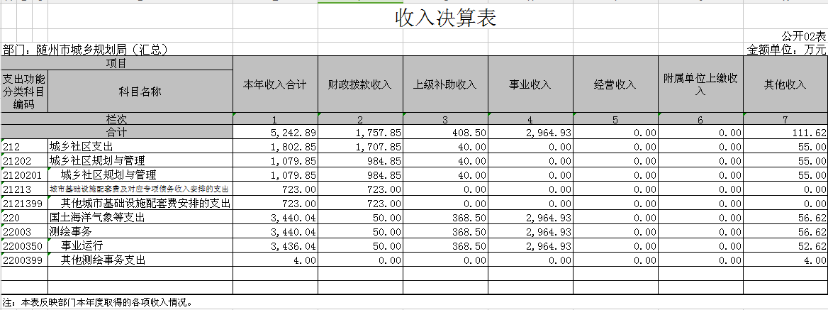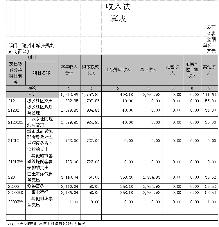 隨州市城鄉(xiāng)規(guī)劃局(匯總)2017年收入合計5,242.89萬元,其中:財政撥款1,757.85萬元,上級補助收入408.50萬元,事業(yè)收入2,964.93萬元,其他收入111.62萬元。