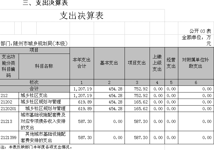 三、支出決算表