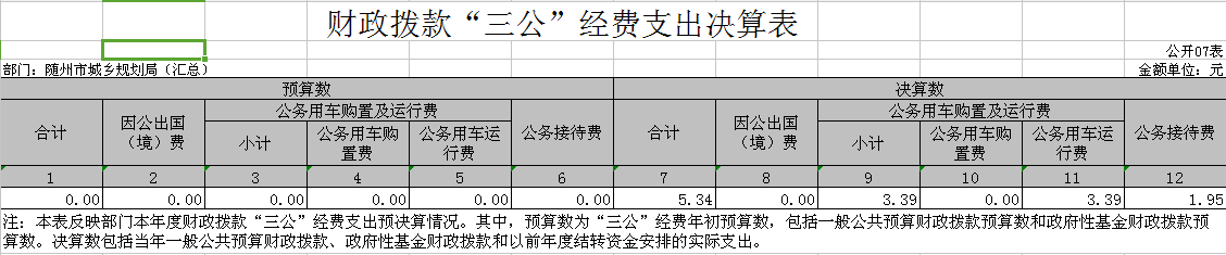 七、一般公共預算財政撥款“三公”經費支出決算表