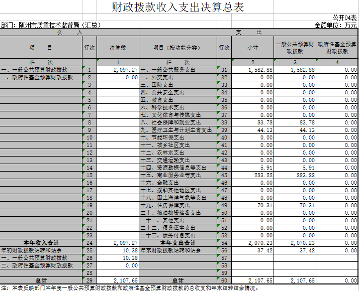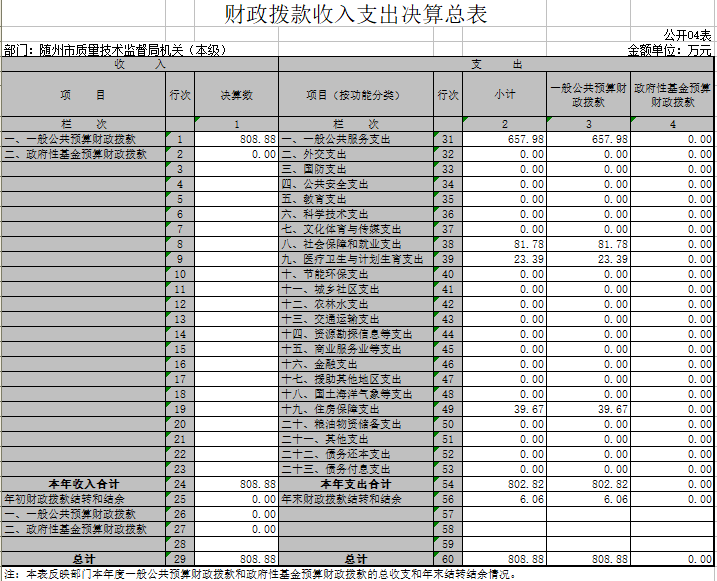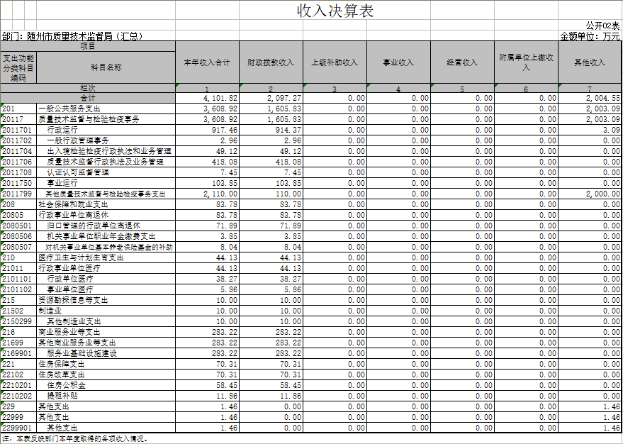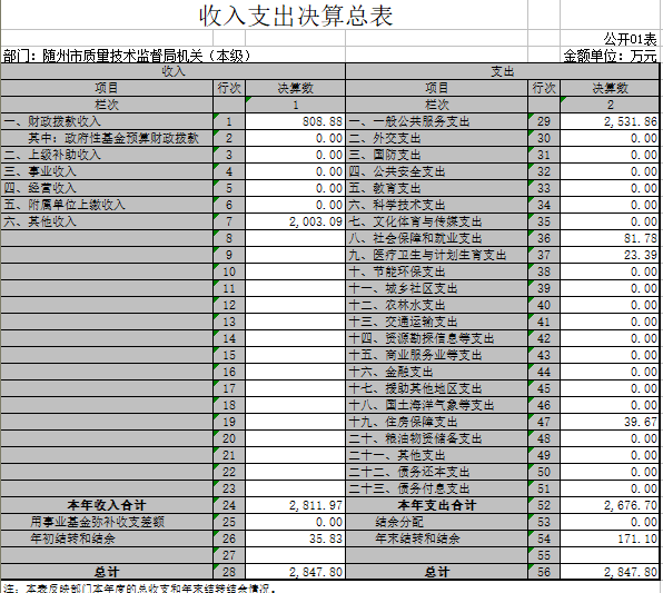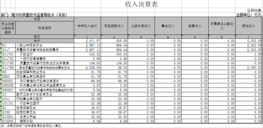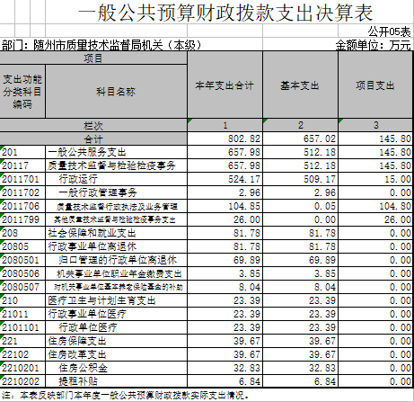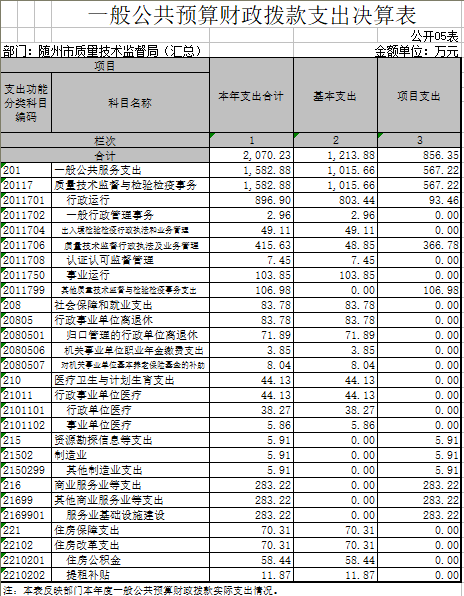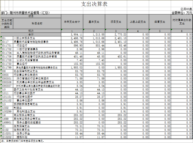 1、隨州市質量技術監督局(匯總)2017年度部門決算公開表