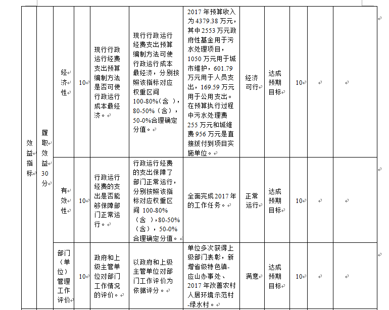 存在的問題:部門整體支出績效評價體系的建立不夠科學,對部門職責的特殊性設立績效指標不夠準確合理。
