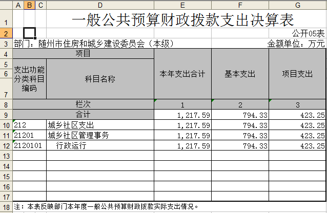 2017年隨州市住建系統(tǒng)(匯總)部門全年支出13545.99萬元,其中財政撥款支出10275.10萬元,比年初預算13173.15萬元減少了2898.05萬元,主要原因是住建系統(tǒng)嚴格執(zhí)行中央八項規(guī)定,壓縮一切不合理的支出,厲行節(jié)約。市住建系統(tǒng)(匯總)部門全年支出比上年決算支出的15321.33萬元減少了1775.34萬元,同比下降了11.59%。其中基本支出9921.79萬元,占比73.24%;項目支出3602.99萬元,占比26.6%;上繳上級支出21.2萬元,占比0.16%。