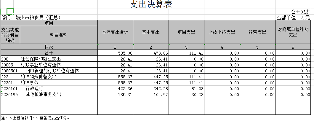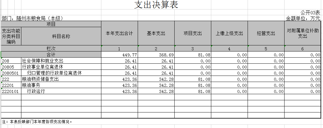 1、隨州市糧食局(匯總)2017年度部門決算公開表
