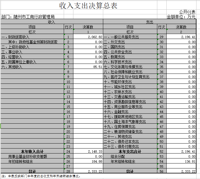 1.決算收入總計2333.22萬元,其中: 公共財政預算財政撥款2062.82萬元,占88.41%;其他收入85.51萬元,占3.66%;年初結余結轉184.88萬元,占7.92%。比上年增加155.53萬元,增長7.14%,主要原因是人員經費的增加。