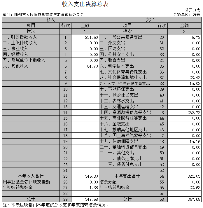 ??國資監管經費10萬元,截止2018年12月31日,10萬元國資監管經費無結余。需要說明的是,按照隨招商委[2018]1號文件,市政府2018年安排市國資委招商分局專班工作經費10萬元,實行招商專款專用,截止2018年12月31日,10萬元招商分局專班工作經費結余12735.8元,財政局已在2019年度統籌收回。