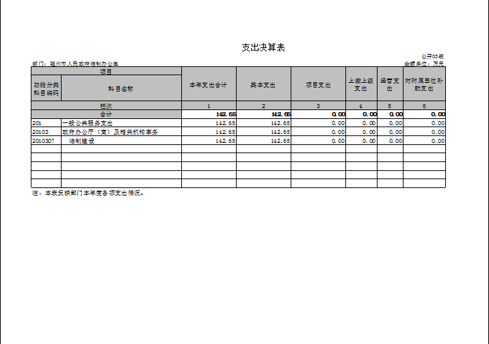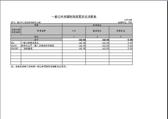 2018年度總支出142.65萬(wàn)元。比2017年度減少了41.52萬(wàn)元,減少主要原因是人員減少,法制業(yè)務(wù)重心轉(zhuǎn)移,壓減開(kāi)支。
