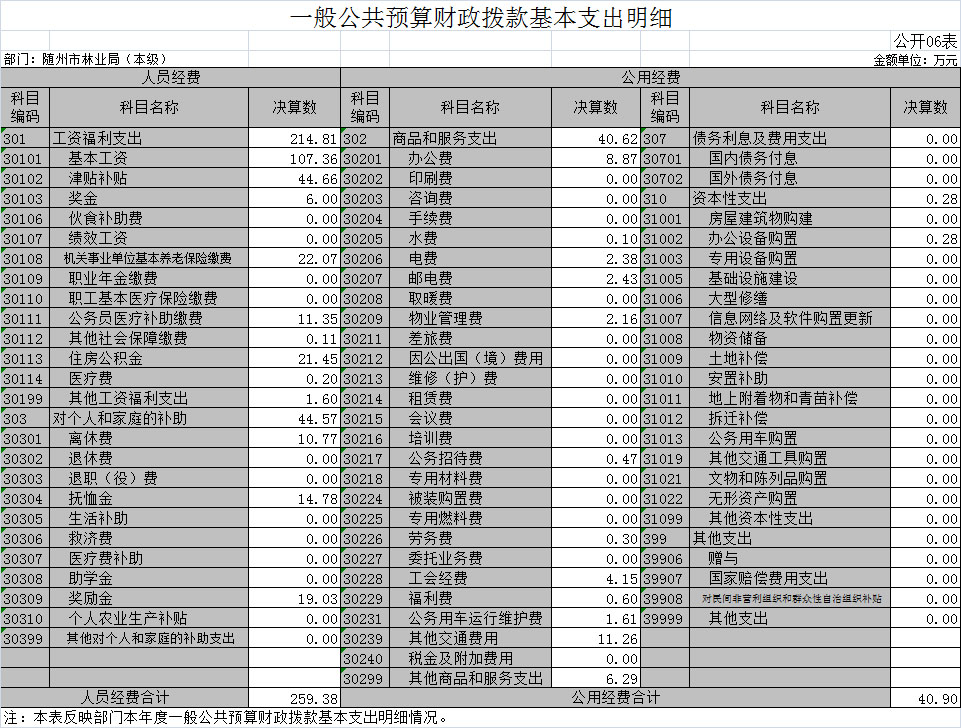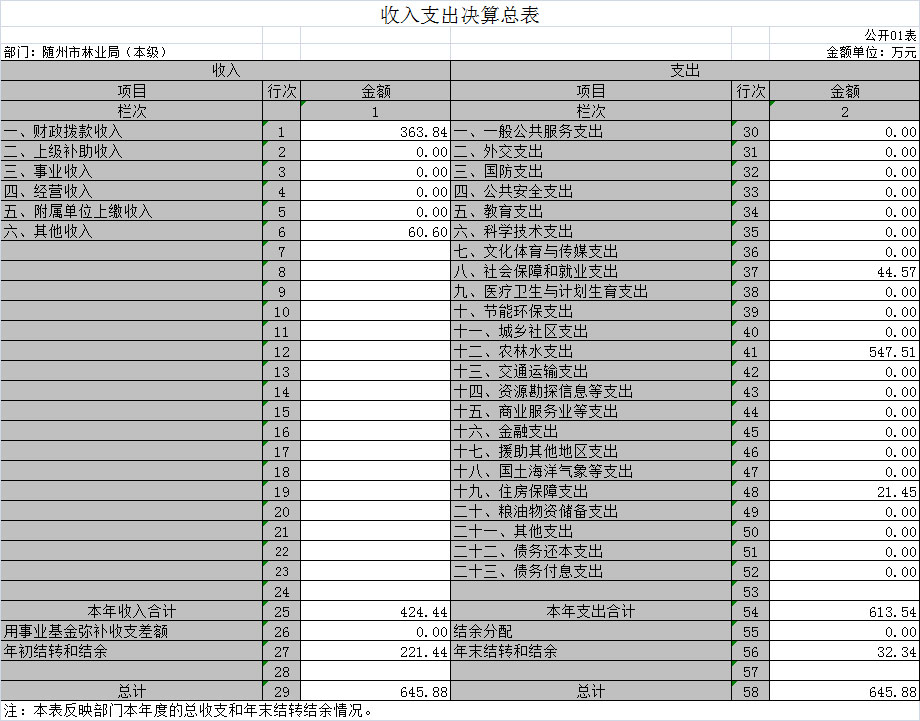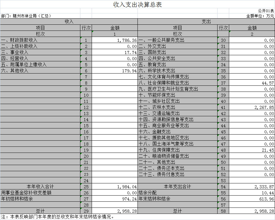 一、隨州市林業(yè)局2018年部門決算表(匯總)